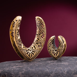 Welcome to our extensive brass collection. Here you will find an abundance of brass plugs, tunnels, and hangers with options available in both brass and white brass. Browse through our brass collection to find the perfect accessory to express yourself and add a little flair to your life. Need some guidance on stretching tips, methods, sizing, and cleaning? Go to our ear stretching guide.