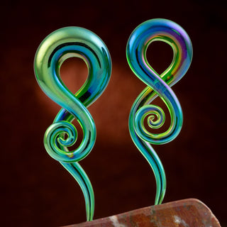 Blue with White Swirl Single Flare Glass Plugs *Discontinued*