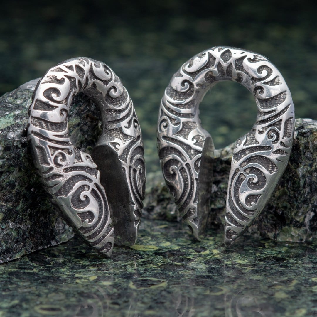Solid and heavy with deep engravings. I get complimented frequently when I am wearing these hangers. Delivery is super fast and reliable. This was the 3rd purchase and I have been extremely satisfied with everything that has been delivered to me. And the prices are way better than anything comparable at any of the b&m that I've visited.