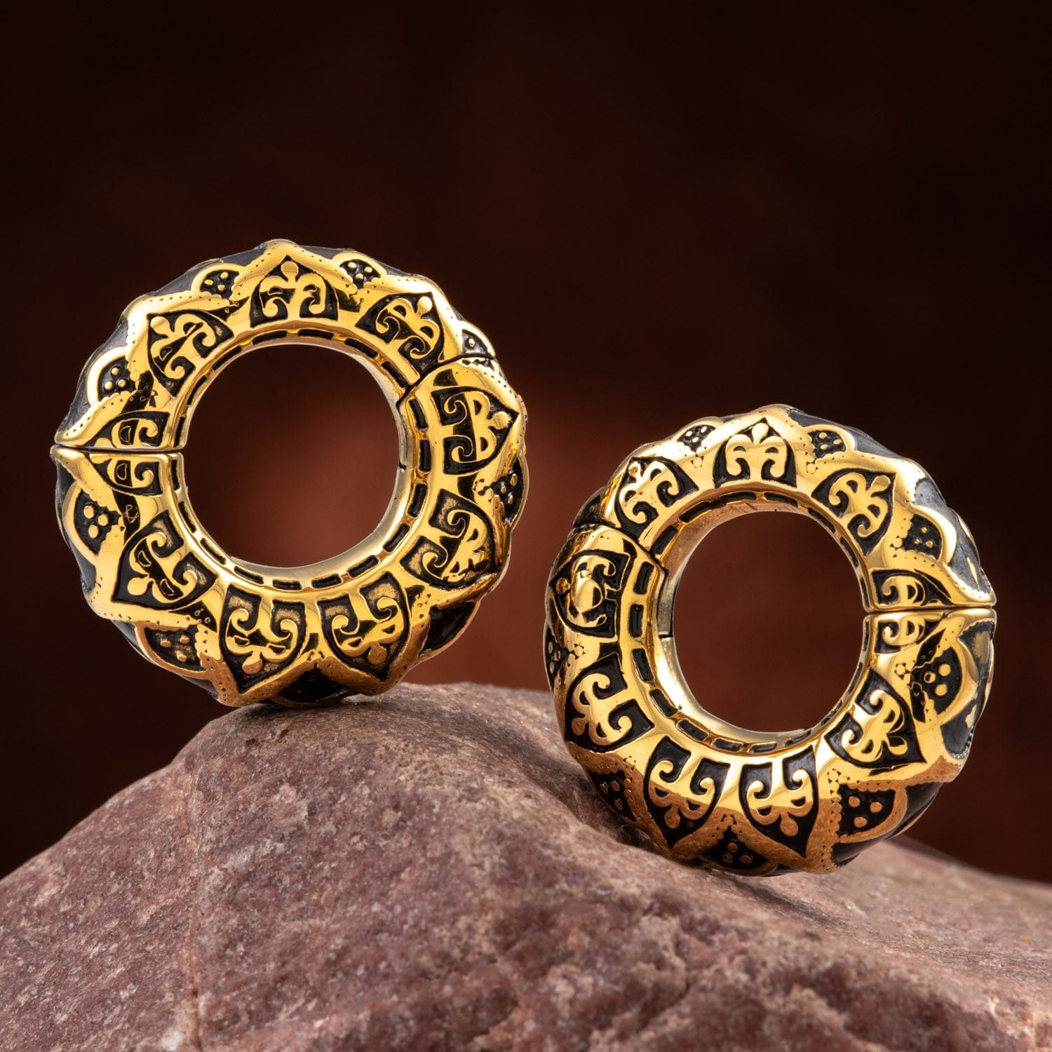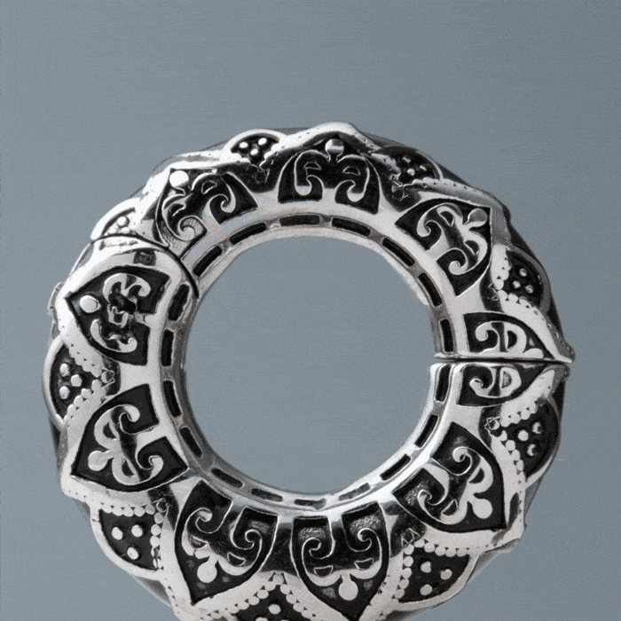 - Shape: Circular with engraved pattern