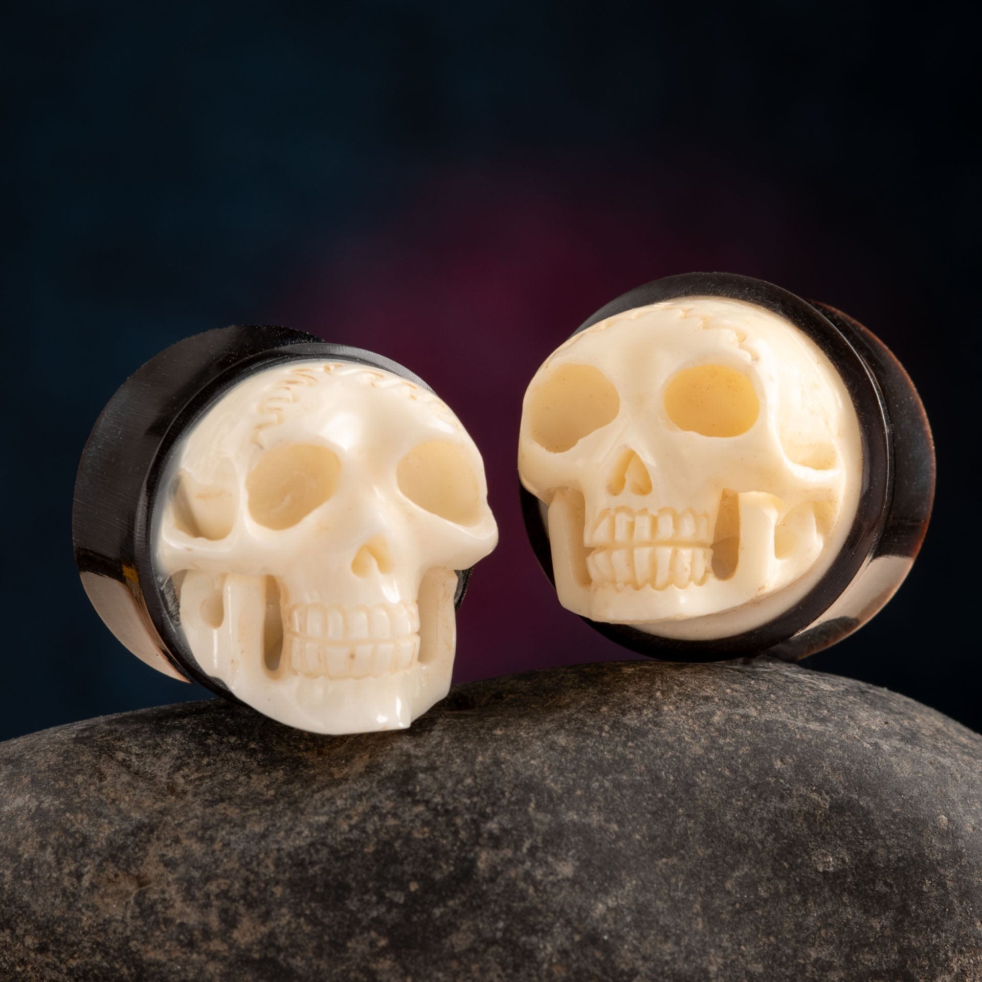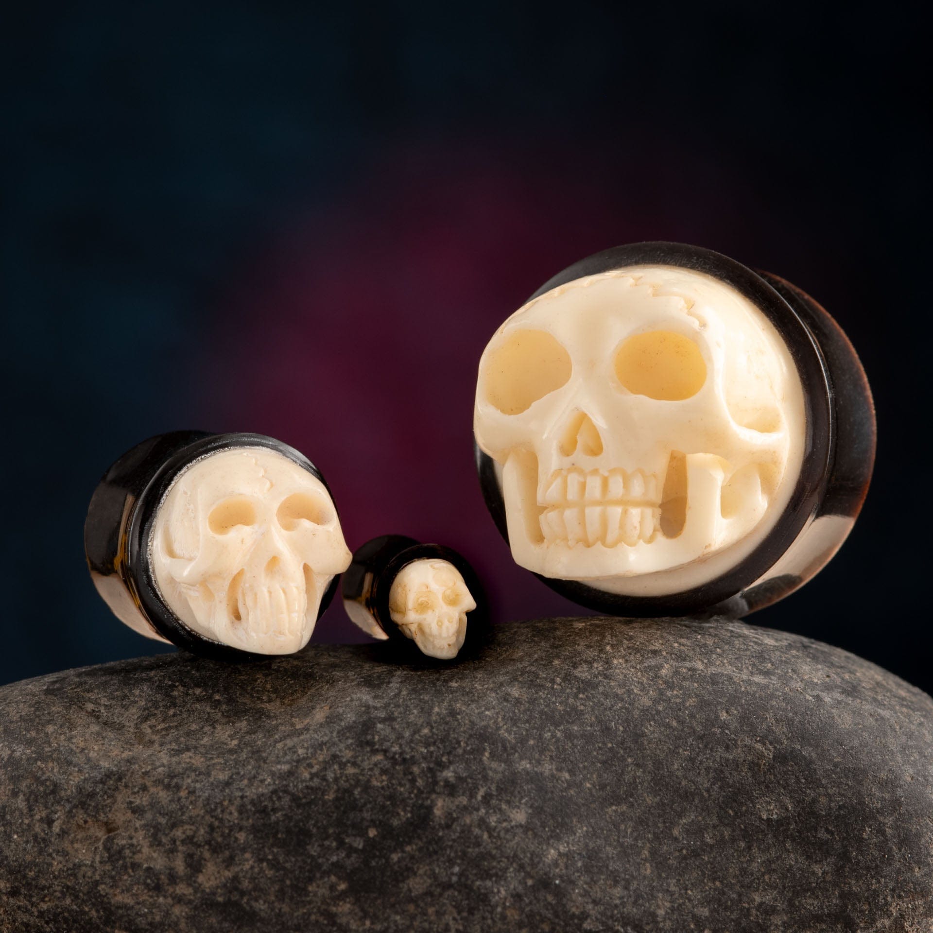 Forget flimsy plastic – these 3D skull plugs are crafted from genuine animal horn, each one a unique work of nature's artistry. Sculpted into striking skulls complete with intricate details, they exude a raw power and untamed elegance that will leave you feeling like a modern-day shaman.