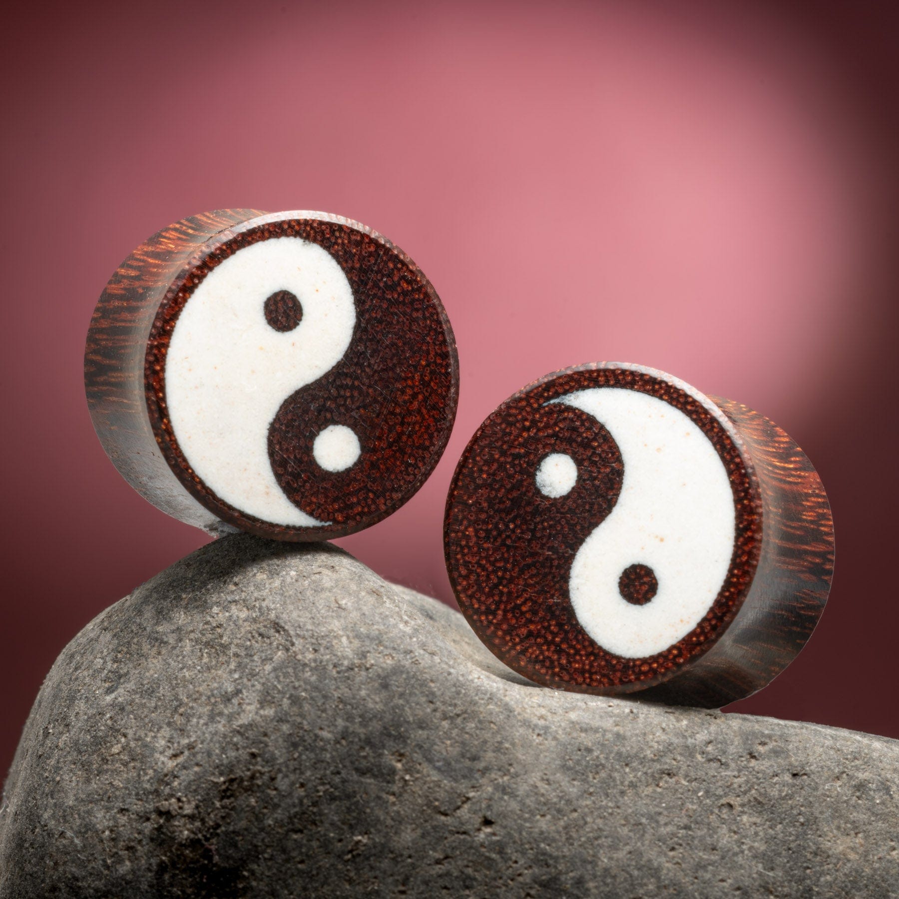 Embrace harmony in your stretched ear style with these yin yang plugs, crafted from radiant natural tamarind wood and inlaid with finely detailed bone powder. The grain of each plug is unique, meaning your pair is as individual as you are, while the classic yin yang motif grounds your look in timeless symbolism.